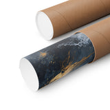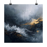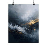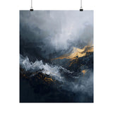 A matte vertical poster that draws the quiet intensity of an evening storm into your space. Deep slate and midnight swirls meet warm gold veins, creating a calm, dramatic focal point that reads like a memory rather than a loud statement. The archival, museum-grade paper and Giclée inks lock in rich contrast and subtle texture without glare, so the composition keeps its depth whether hung alone over a sofa or paired in a layered gallery wall. It settles into minimalist living rooms, curated home offices, or a thoughtful hallway — a piece that invites slow looks and lingering moments.